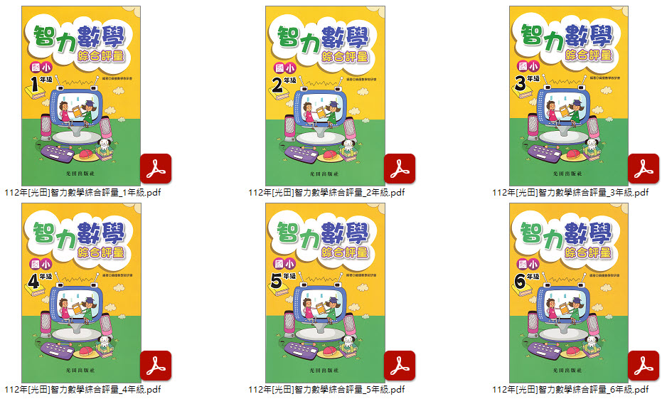 112年 [光田]國小數學 1-6年級 數學應用題理解 + 數學統整講義 + 智力數學綜合評量 教材光碟