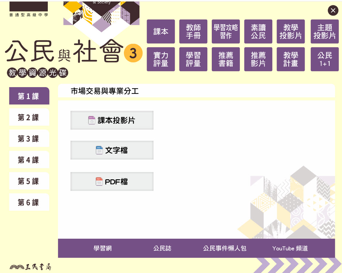 112學年上學期 高中 三民版 公民科 2年級 教學光碟