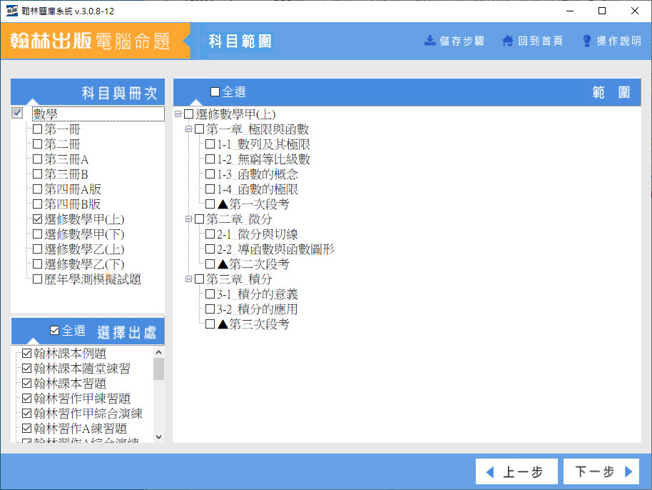 112學年上學期 高中命題光碟 翰林版 數學科(一、二、三A、三B、四A、四B、選修甲上、選修甲下、選修乙上、選修乙下、歷年學測模擬試題)(108課綱) 題庫光碟