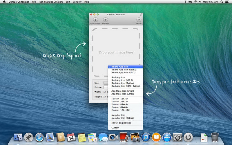 With Genius Generator you're able to generate icons in every size.
