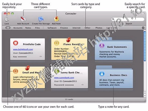 Concealer以卡片的形式儲存資訊並採用最新的AES-256加密算法來保護信用卡號碼,密