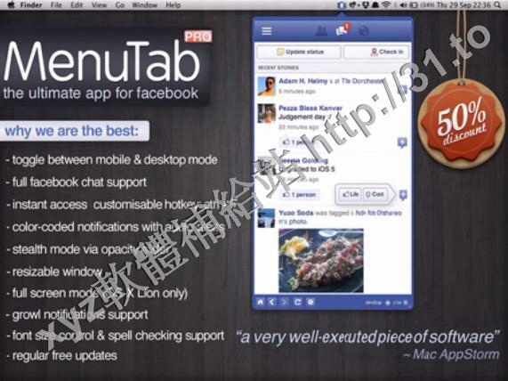 • MenuTab Pro for Facebook v5.1 MacOSX 英文正式版(Facebook 快速訪問軟體)