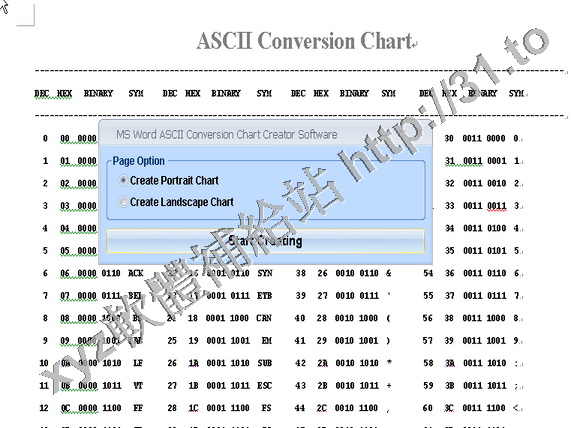 MS Word ASCII Conversion Chart Creator Software is a handy