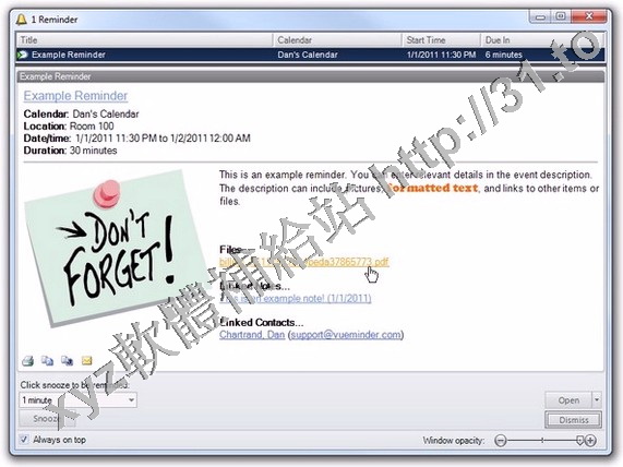 以自己和他人。彈出提醒可以選擇包括圖片,視頻,音樂,或網頁。VueMinder日曆完全支援