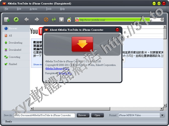 • 4Media YouTube HD Video Converter v3.0.1.0309 英文正式版(影片下載轉換工具軟體)