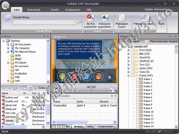 Sothink SWF Secompiler可讓我們很快速地瀏覽及撥放SWF檔案,它同時也是一款將SWF轉換成FLA以及擷取SWF內之元件之專業工具軟體。